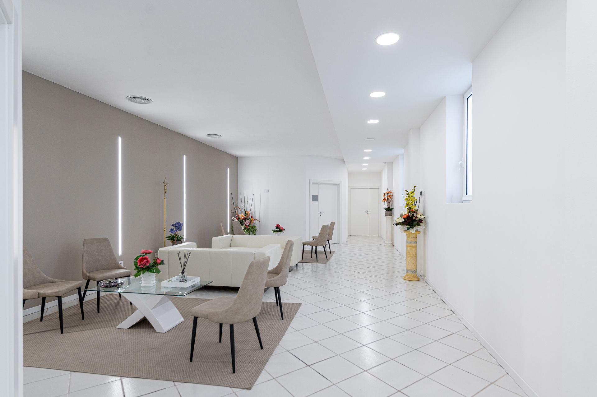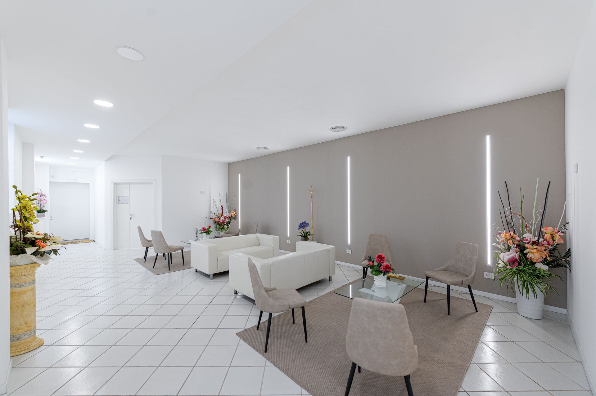 La Casa funeraria è una struttura nuova e moderna, con ampi spazi discreti e ospitali dove parenti e amici possono raccogliersi per dare l’ultimo saluto al caro defunto.
